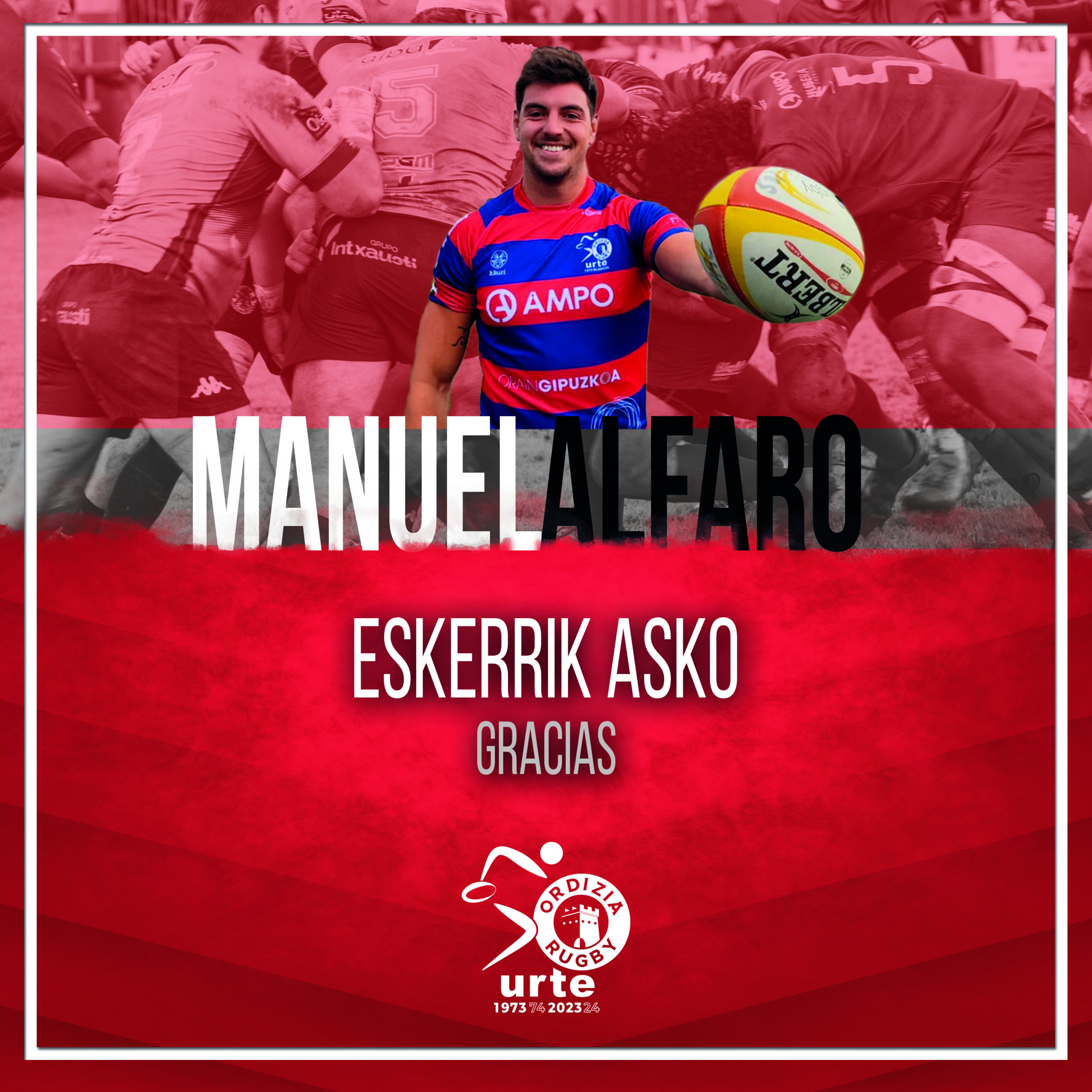 Agur esan behar diogu Manuel Alfarori, ez baitu Ordizia Rugby Elkartean jarraituko. Manuel funtsezko jokalaria izan da azken 6 hilabeteetan taldearentzat, beti nabarmendu da bere dedikazioagatik eta seriotasunagatik.