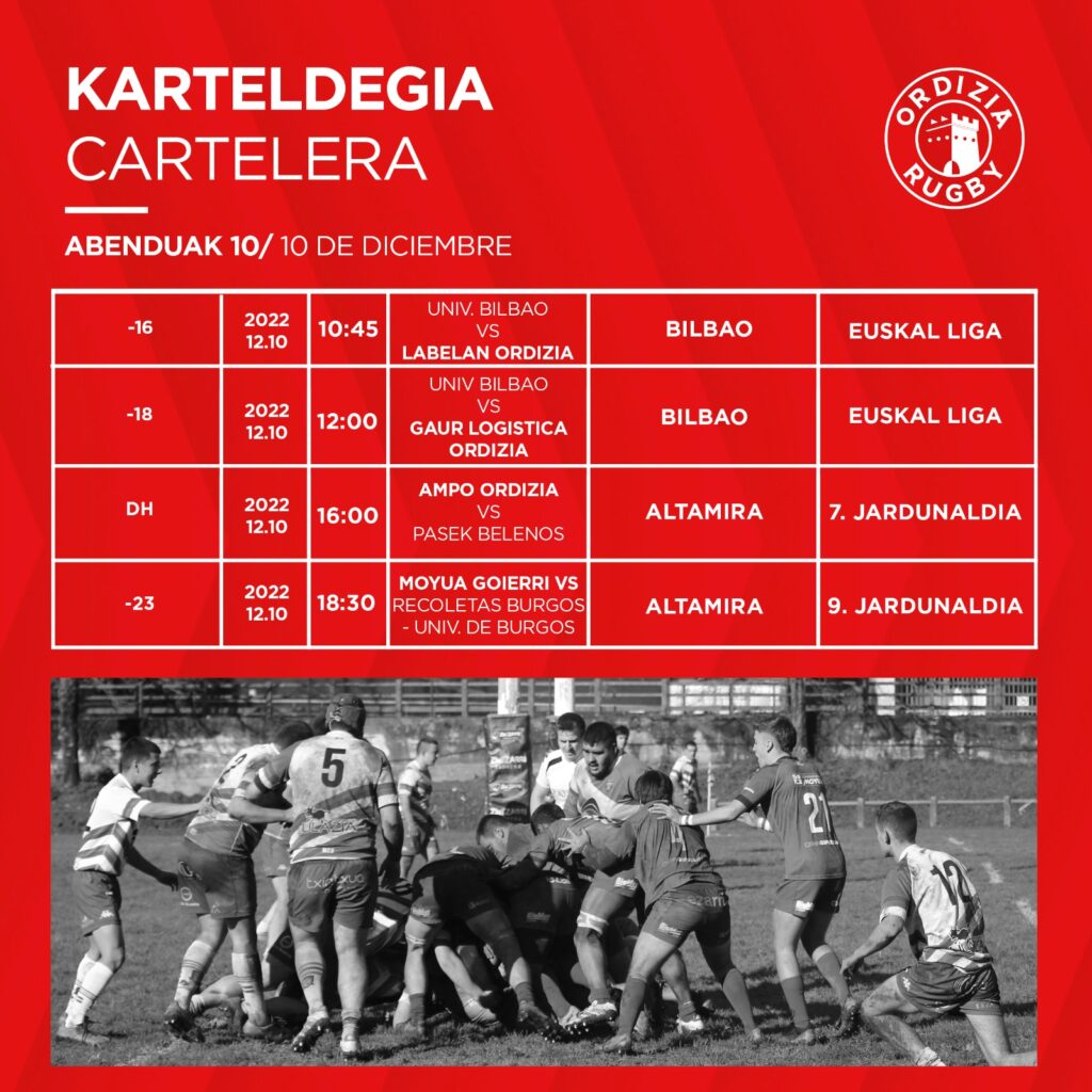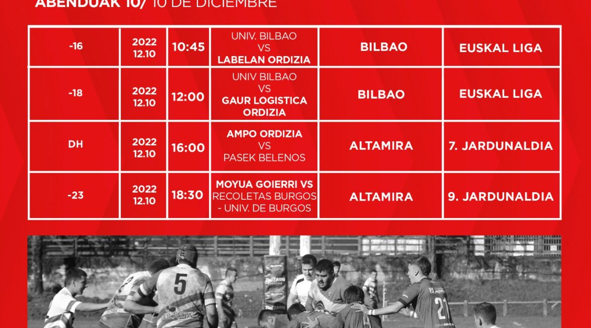 Asteburuko beste bi partidak larunbatean jokatuko dira Bilbon. Lehenengo 16 urtez azpiko taldeak jokatuko du, 10:45etan, Universidad de Bilbaoren kontra. Partida hori amaitutakoan 18 urtez azpiko taldearen txanda izango da agertoki berdinean eta aurkari berdinaren aurka.
