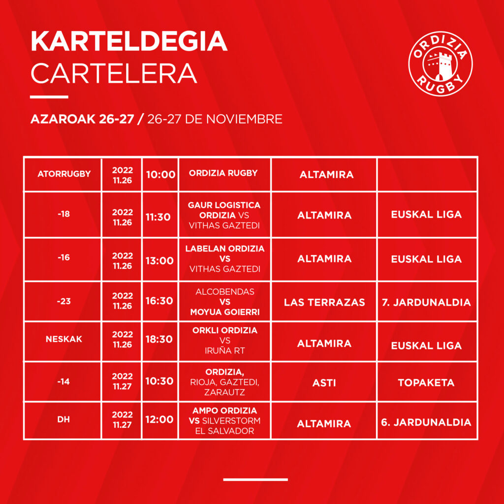 Asteburua 18 urtez azpiko taldeak hasiko du Altamiran Gaztediren aurka jokatuz 11:30etan. Partida hau amaitu ondoren 16 urtez azpiko taldearen txanda izango da eta talde berdinaren aurka neurtuko dituzte indarrak, Gaztediren aurka.