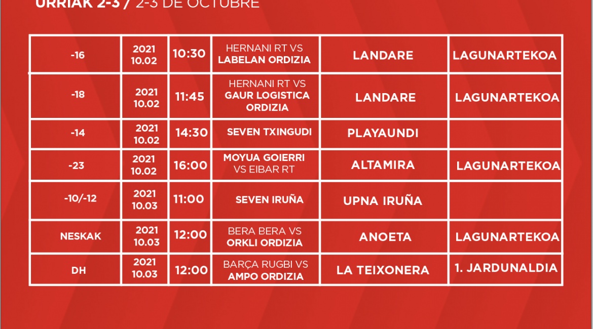 Ona hemen asteburu honetan gure taldeek izango dituzten norgehiagokak.
