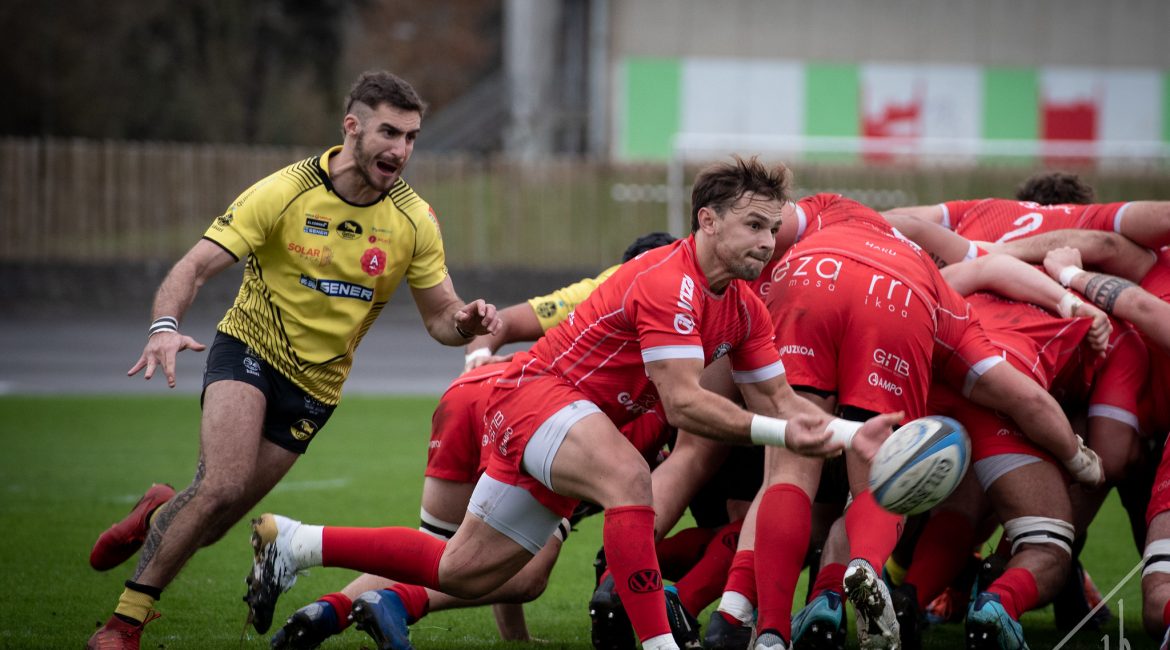 Lehen zatia gogorra eta parekatua joan da. Euskal rugbyaren liderogoa zegoen jokoan eta bi taldeak bere onena ematen saiatu dira. 20-29 erakusten zuen markagailuak bi taldeek aldageletako bidea hartu dutenean.