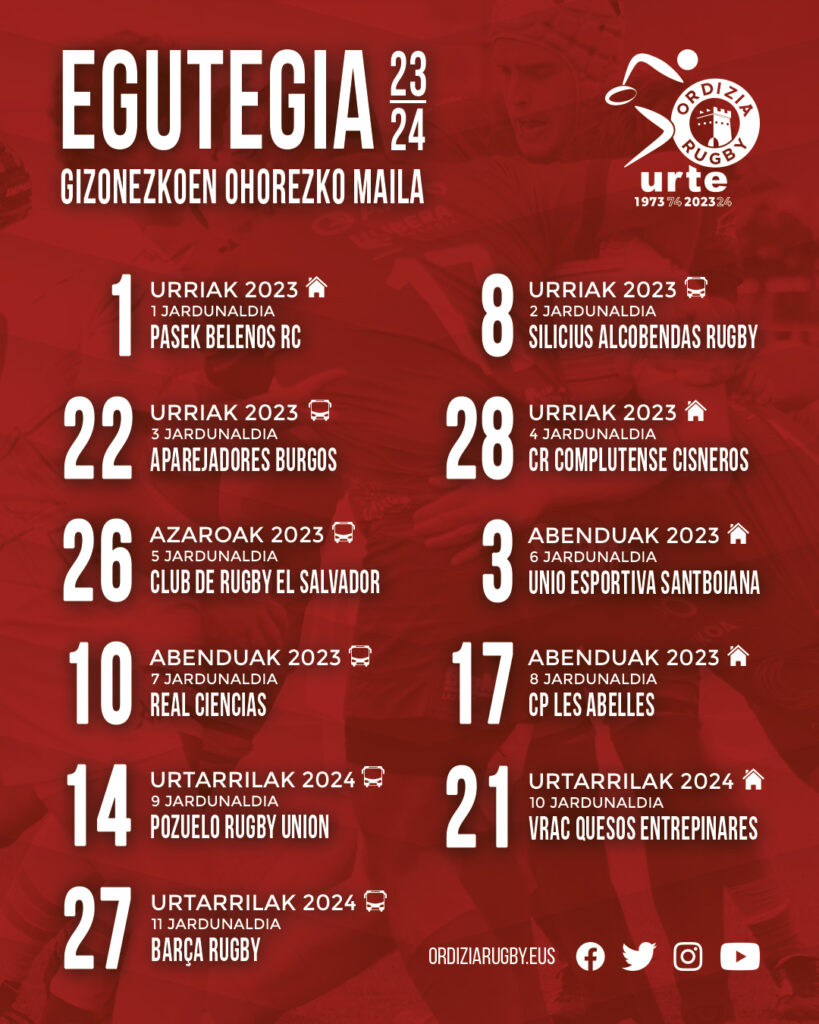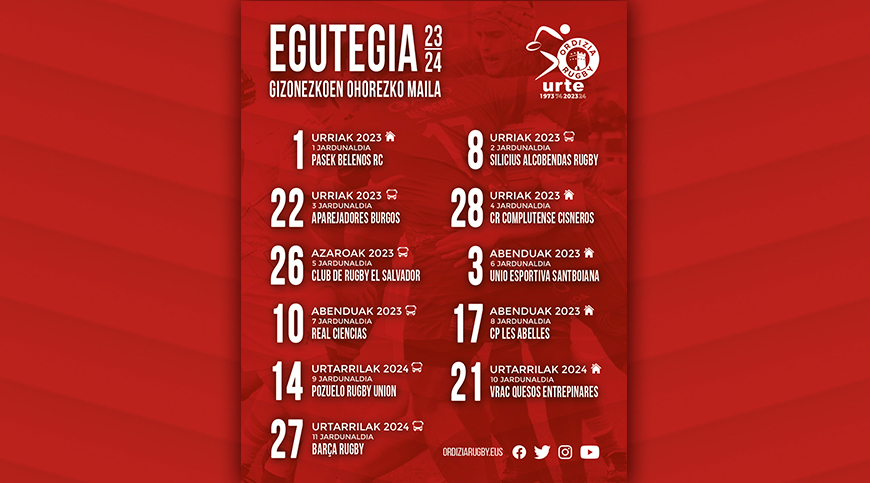 Badugu egutegia Ohorezko Mailarako. Zure zain gaude elkarrekin errugbi onenaz gozatzeko.