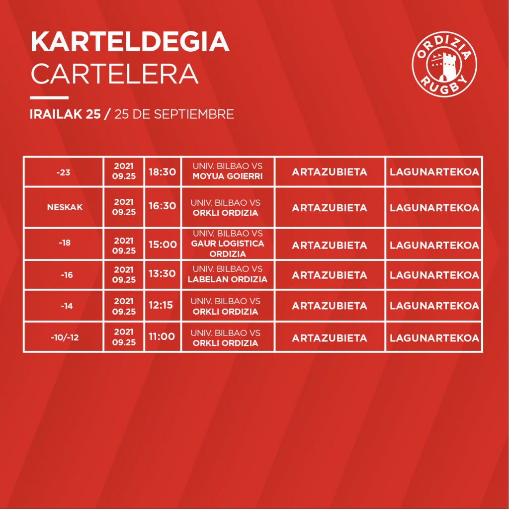 Ordizia Rugby Elkarteko ekipo guztiak martxan jarriko dira asteburu honetan klubeko talde guztientzako partidoak daudelako, lehenengoa taldea izan ezik, denboraldi-aurreko lagunarteko pare bat jokatu baititu dagoeneko, eta liga hasi zain egongo da urriko lehen asteburu honetan.